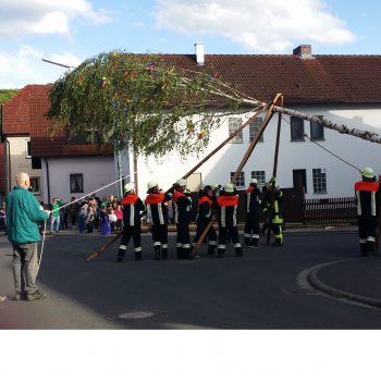 Das Foto mit der Maibaumaufstellung bedeutet für mich, dass im dörflichen Leben der Frühling mit Ritualen – wie die des Aufstellen eines Maibaumes – begrüßt wird und dies fest verankert ist. Die ganze Dorfbevölkerung feiert mit Musik, Essen und guter Laune in den Frühling hinein.